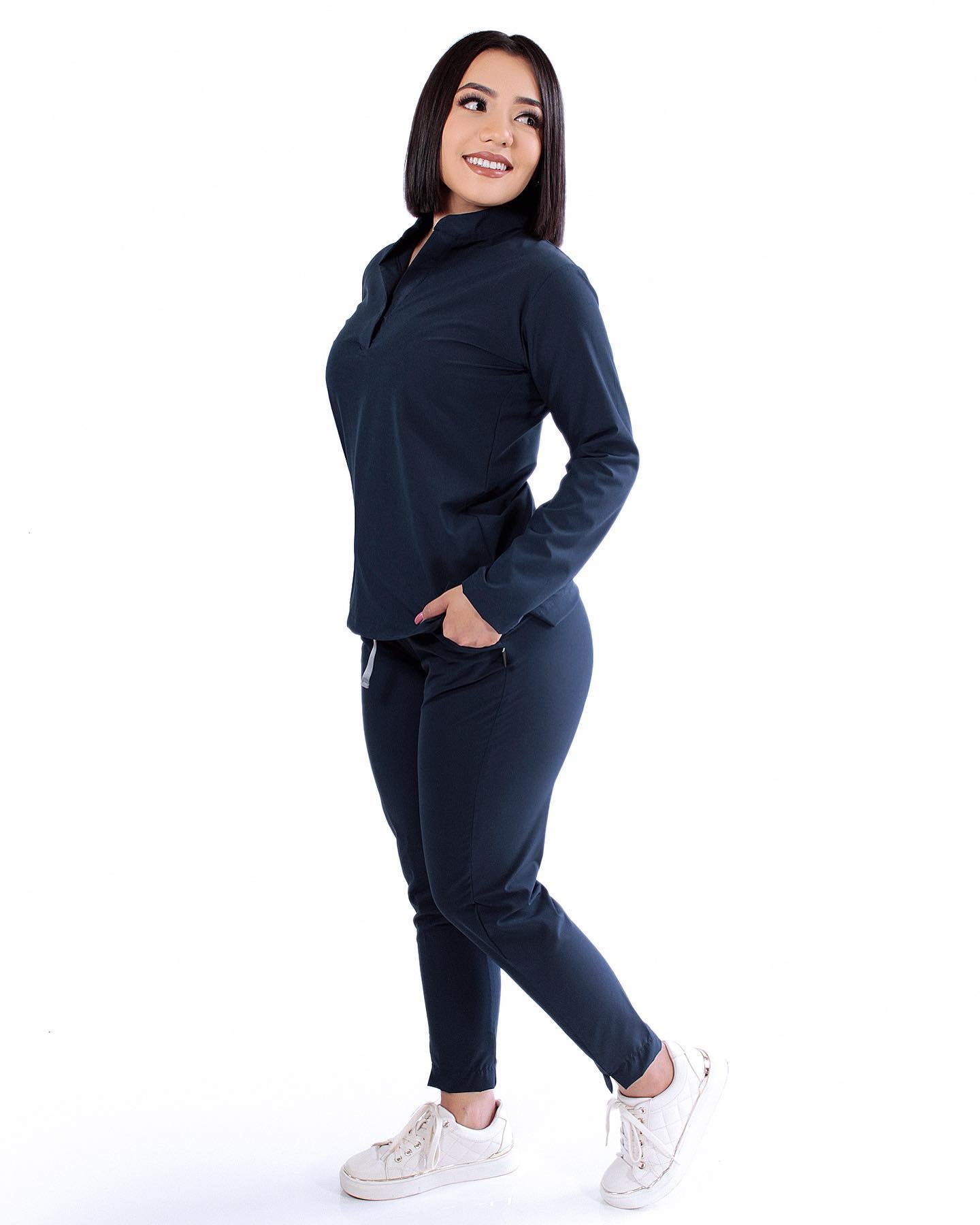 Modelo Cuello en V, pantalón corte tipo entubado.